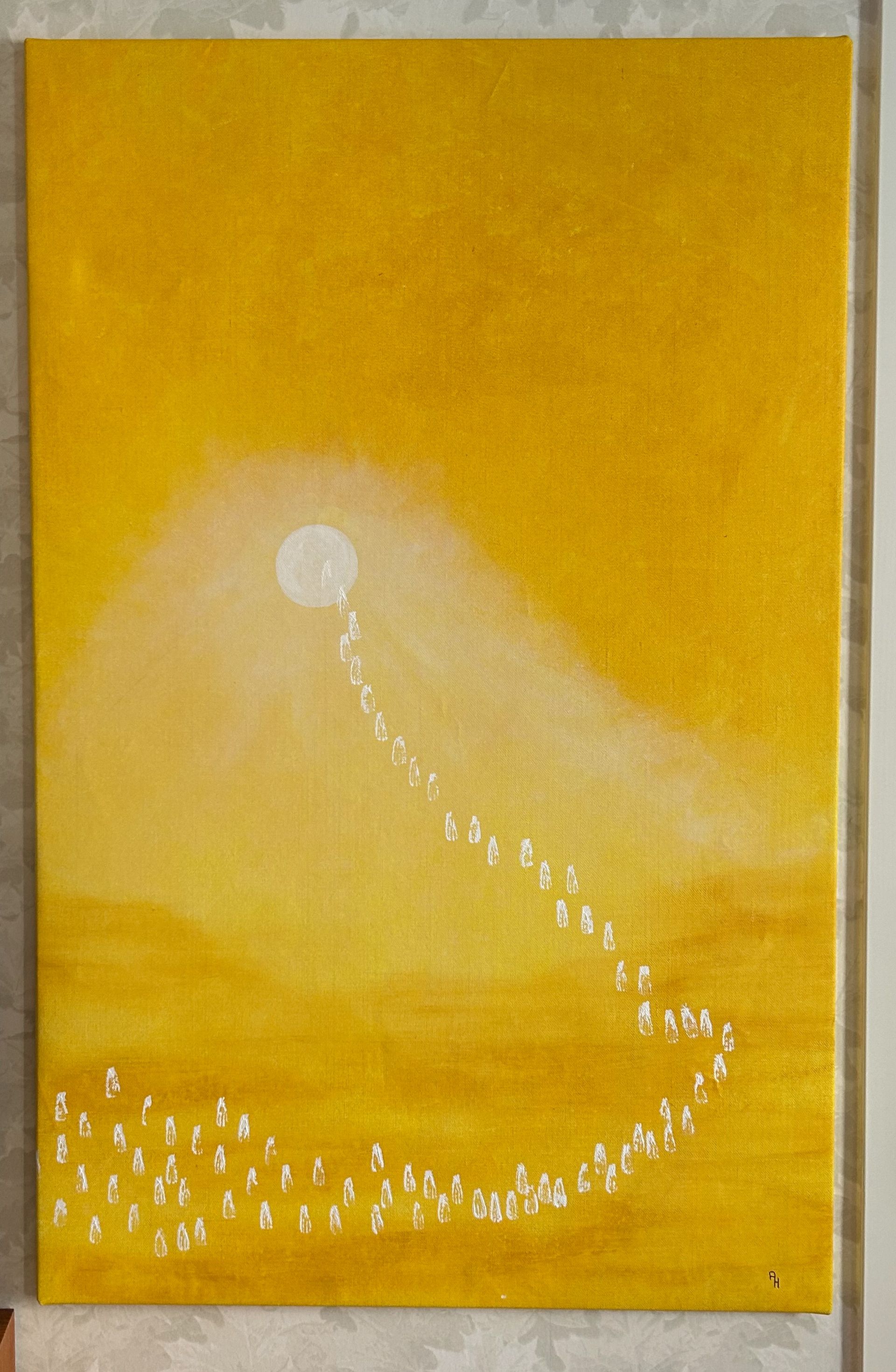 En tavla skapas på nytt i varje betraktares ögon. För att låta den processen vara fri har jag valt att inte namnge tavlorna. Låt tavlorna till ditt inre och iaktta vad som sker i mötet!