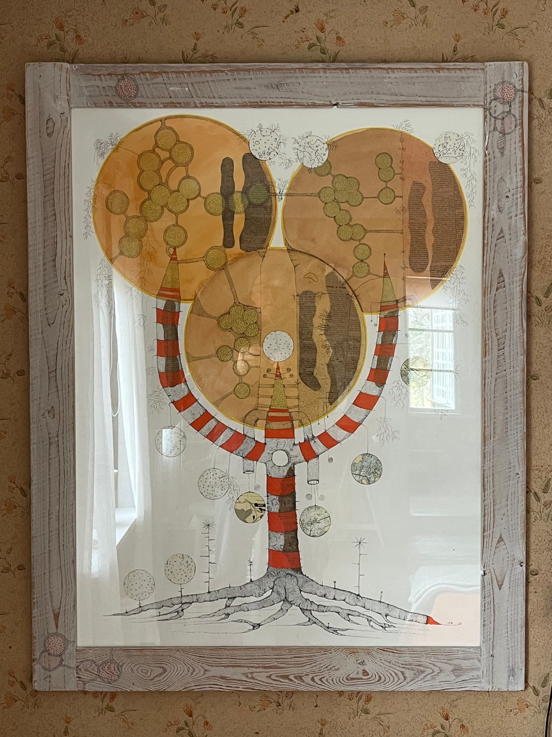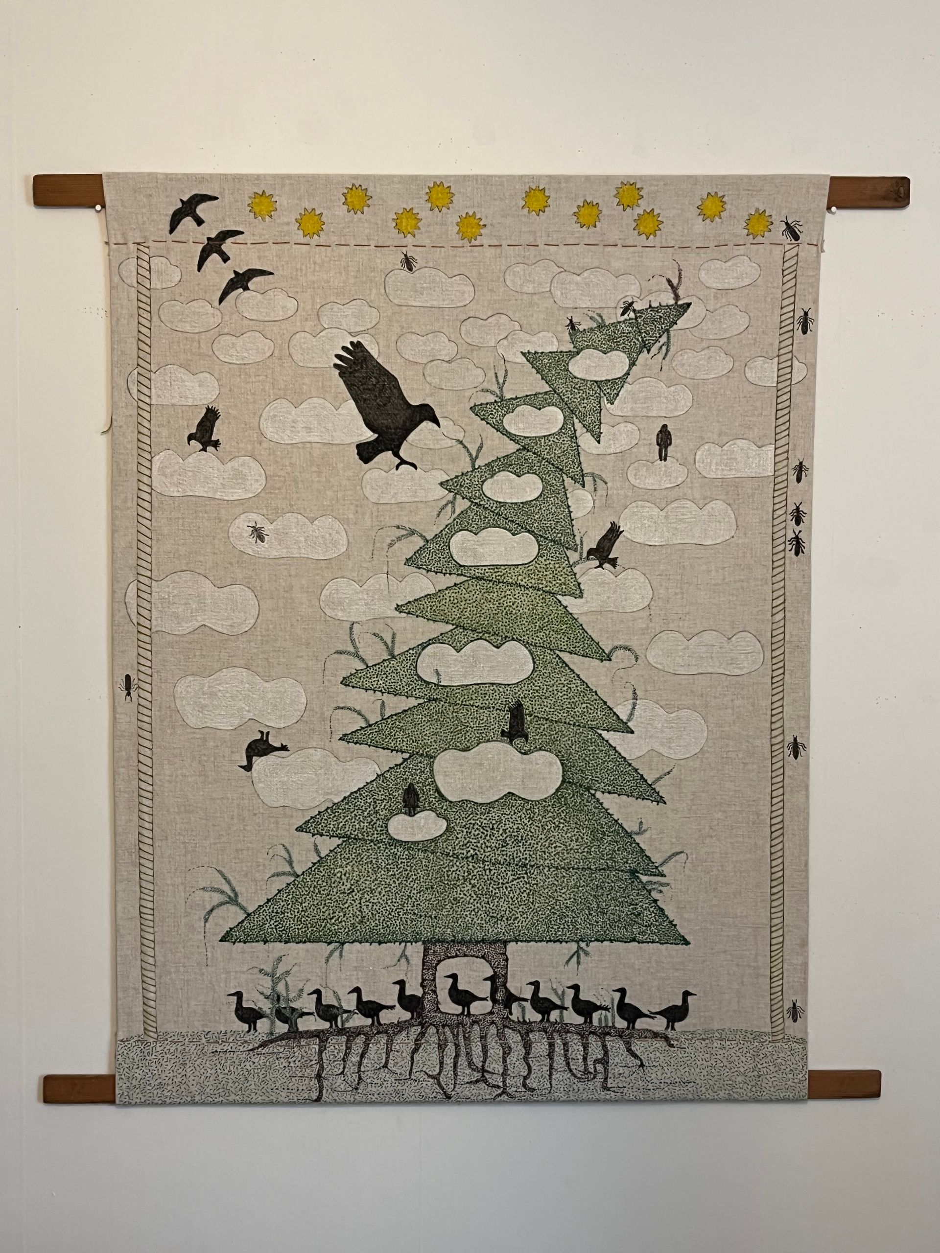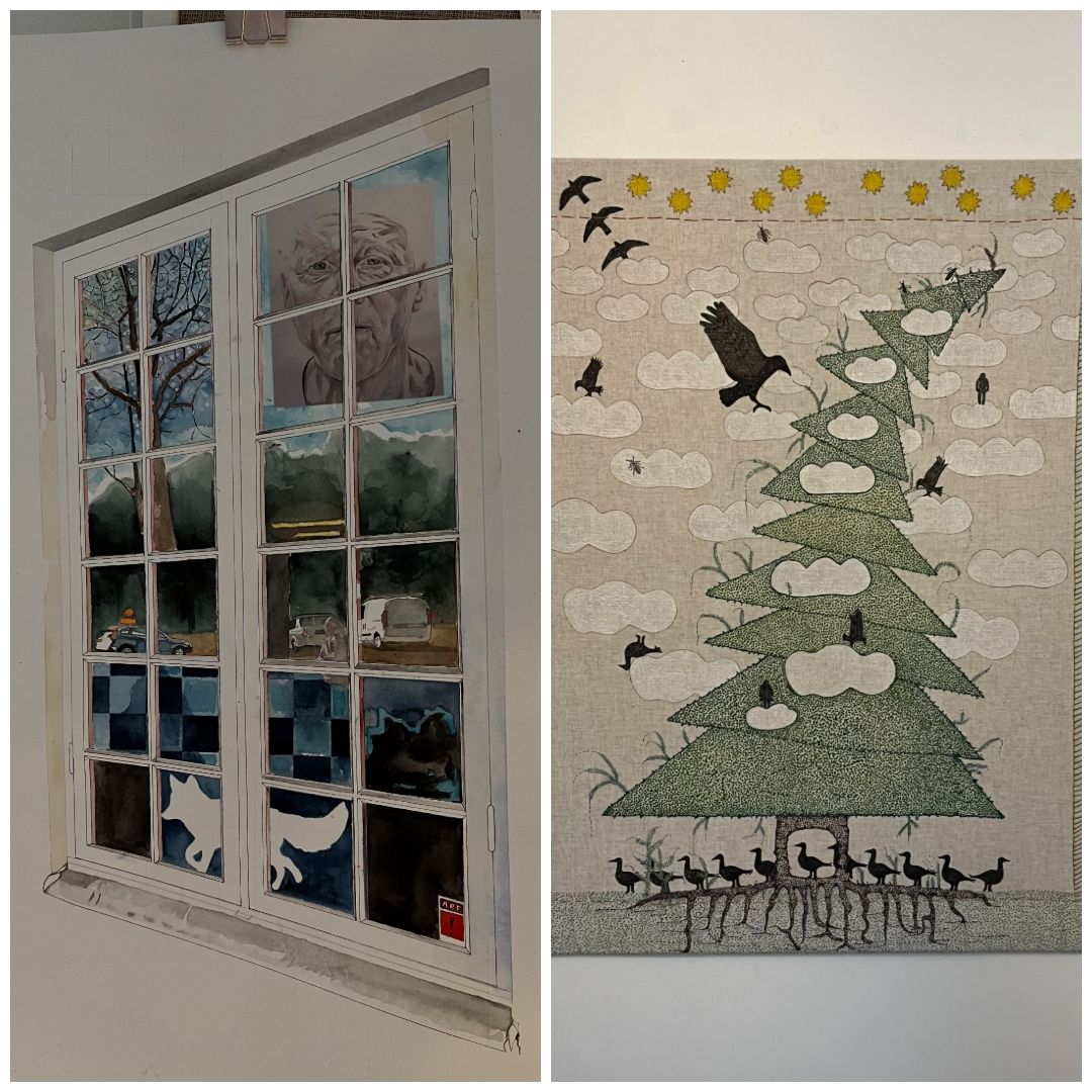 Inger Byren visar textil och blandteknik, där träd är ett kärt tema