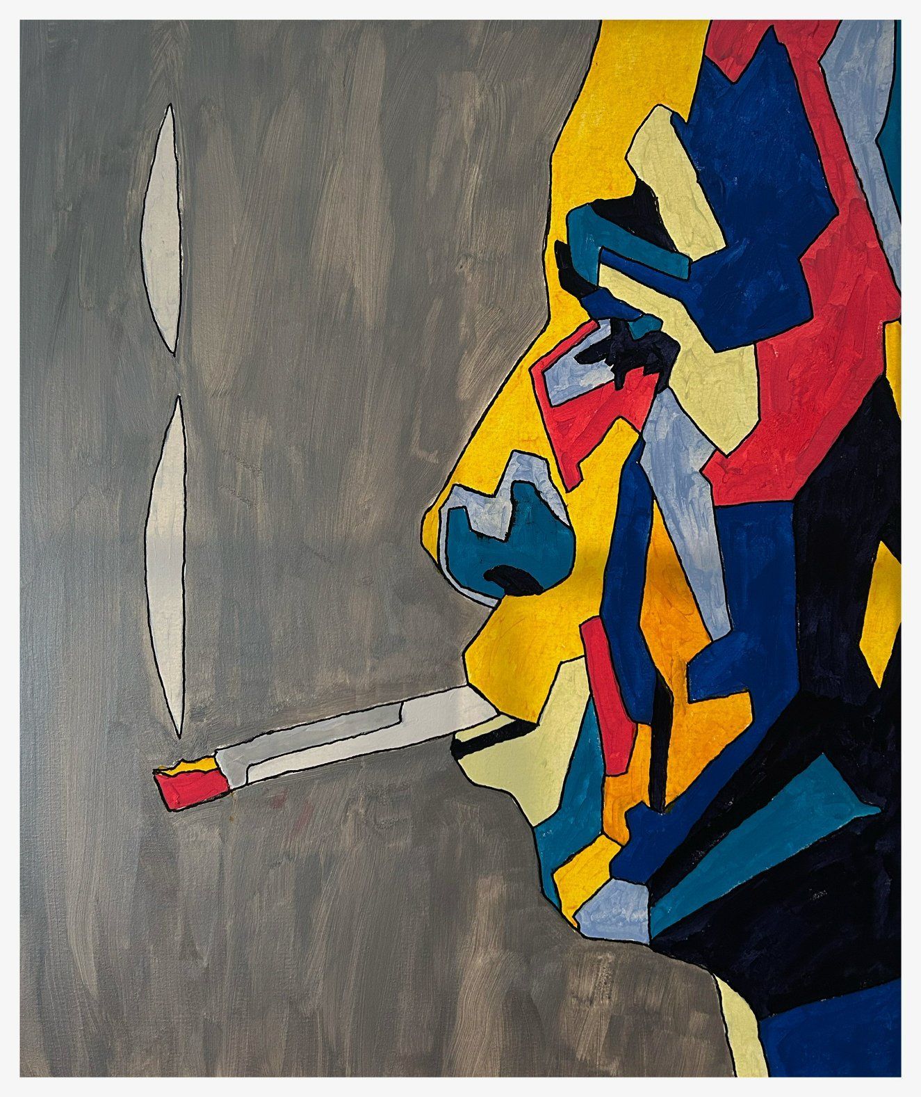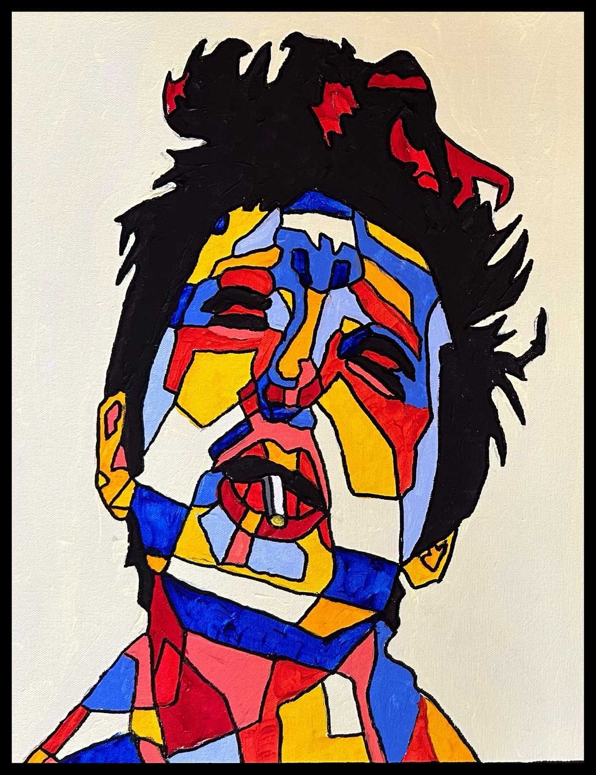 Konstnären Fredrik Casserstedt från Strängnäs, målar PopArt i olja.