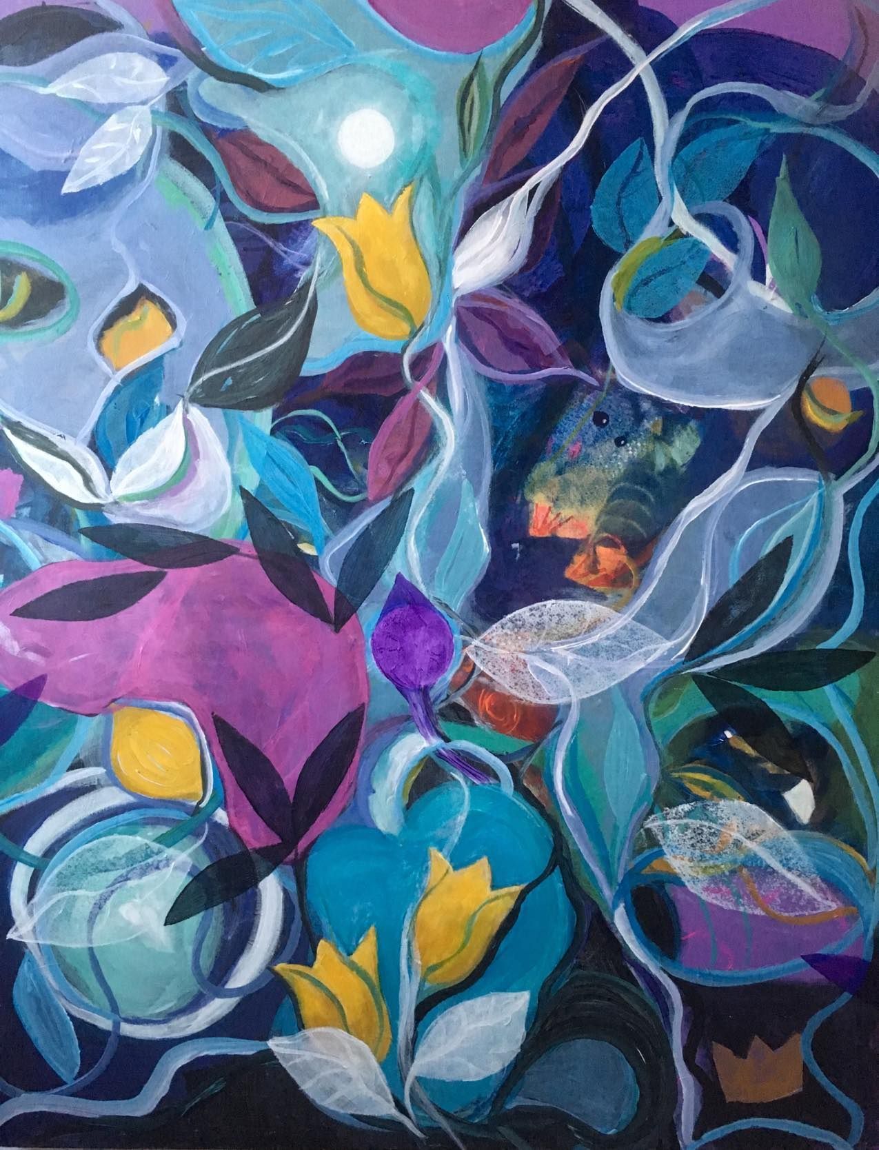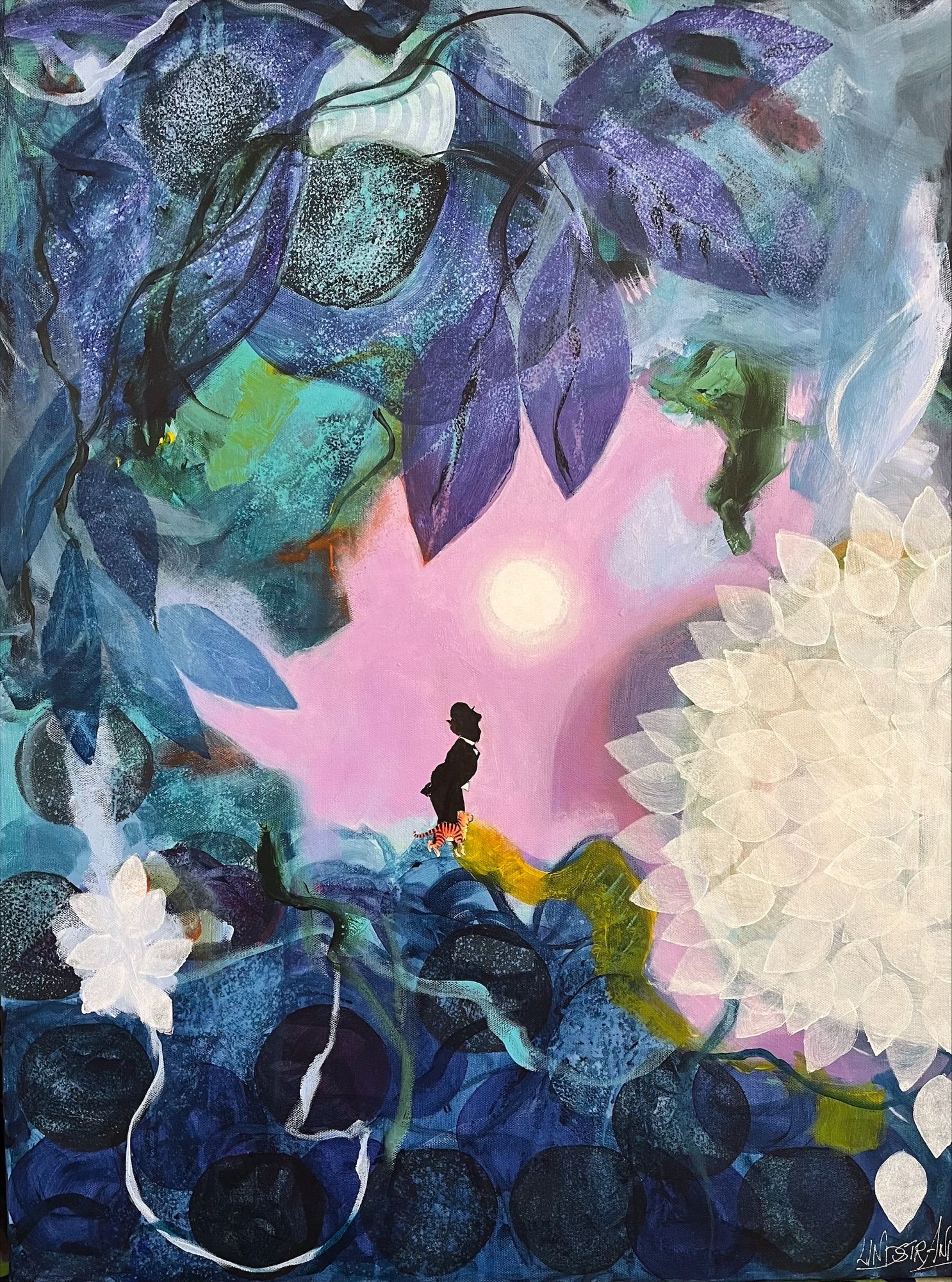 Lena Lindstrand visar sin konst i akryl och blandteknik