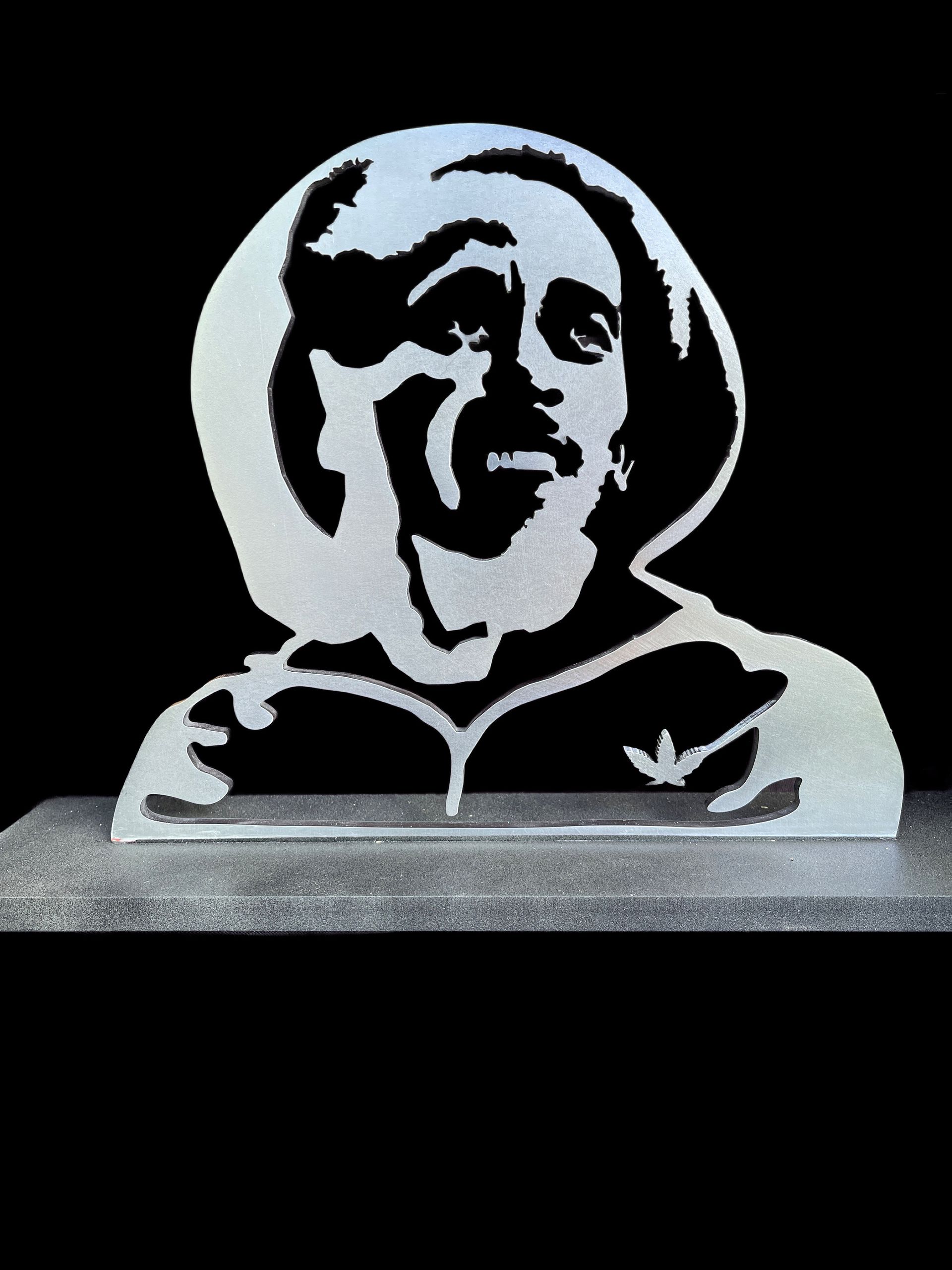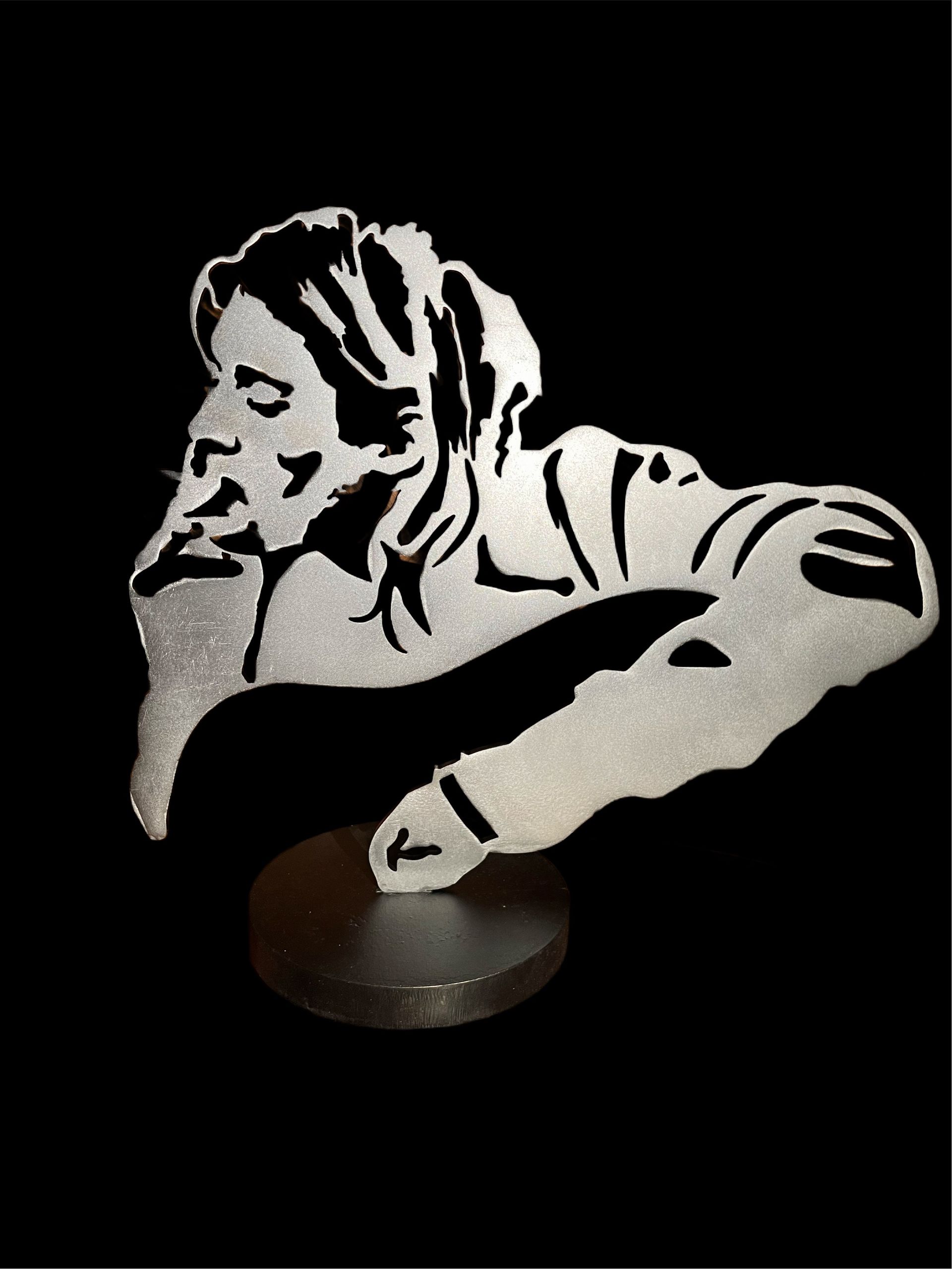 Tobias gör även skulpturer i tjockt stål som föreställer olika kända pop och rockartister